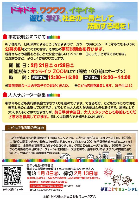 申し込みはこちらのアドレスへ【izukodomo6311@gmail.com】